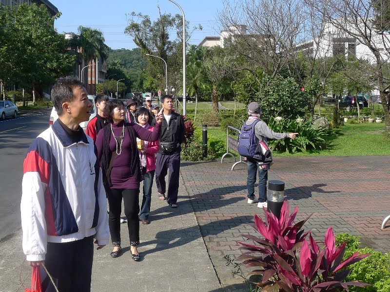 爬上元培小山在蔡元培紀念館後俯看日漸漂亮的生態池,再從館後下山到基因體中心去看郭清治教授的雕塑作品「生命的樂章」和排灣族超大型雕塑。