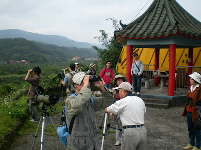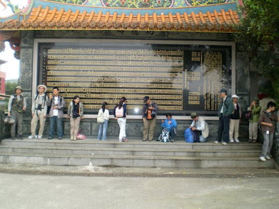 突然下了一陣下雨,大家趕快跑到牌樓下,還準備要拿雨衣,嘴也順便批評氣象又不準了.